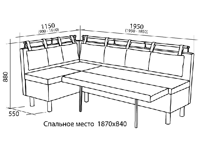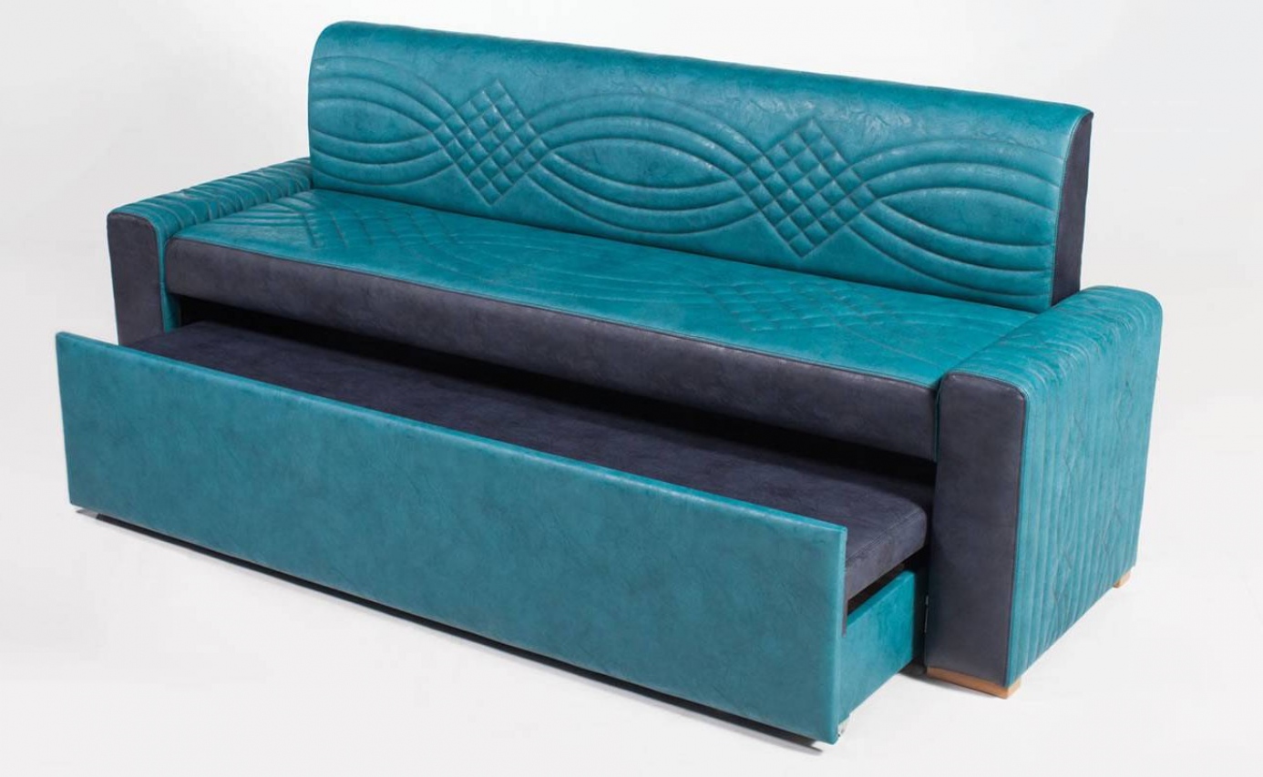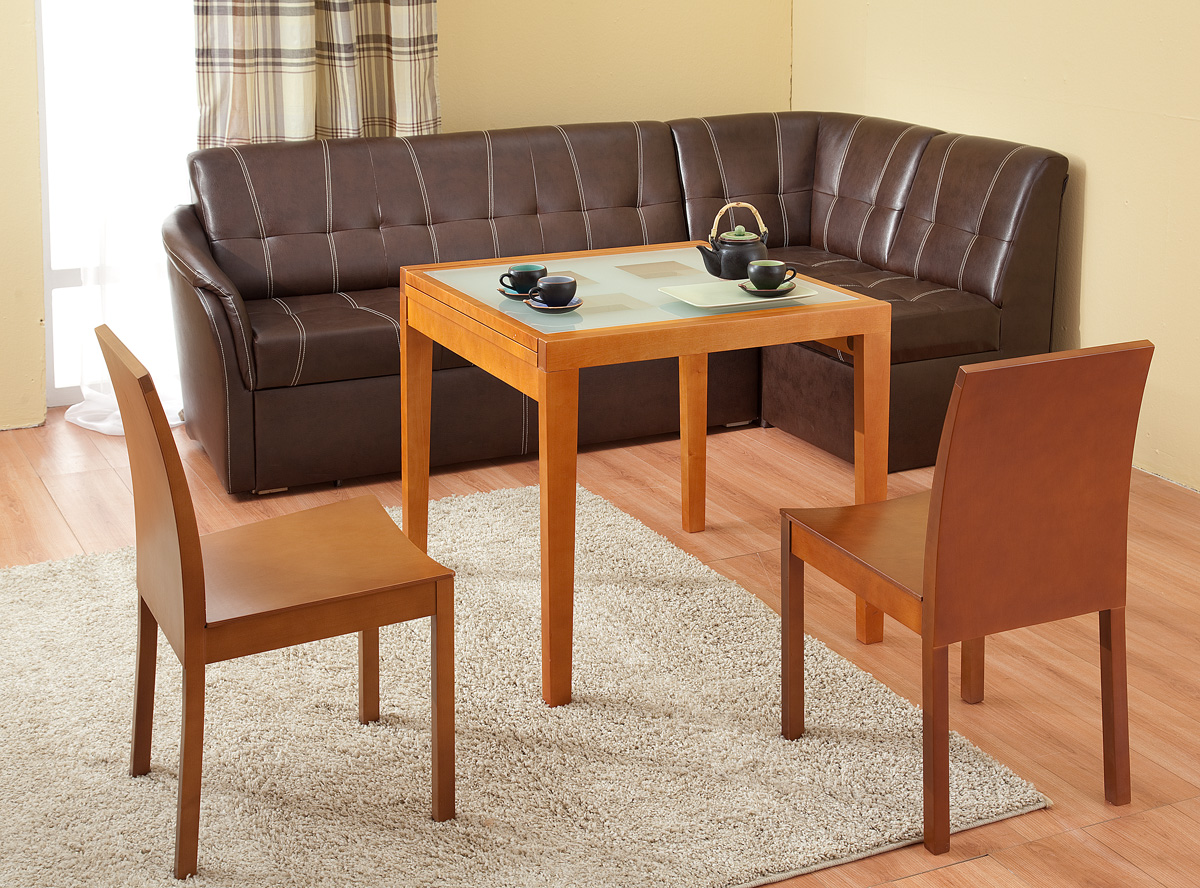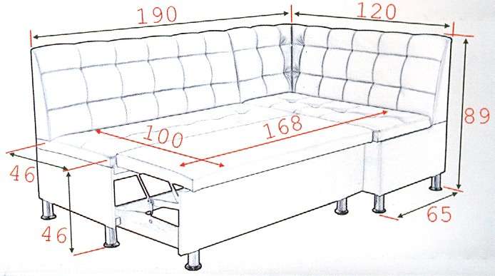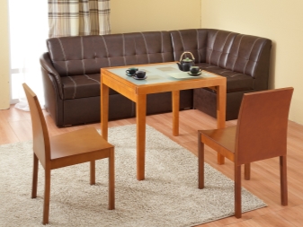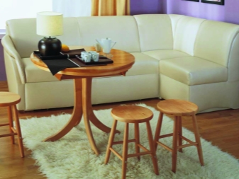 - Bequemlichkeit. Es ist viel angenehmer, auf einer weichen Couch zu sitzen als auf harten Stühlen ohne Rückenlehne. Und wenn sich das Modell nach vorne entfaltet, können Sie sich während des Essens gut ausruhen.