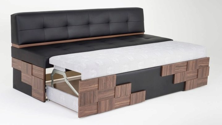 - Liegen mit einem zusätzlichen Bett helfen, das Problem mit dem Empfang der Gäste zu lösen. Der Kauf eines solchen Modells ermöglicht es einer Person, ruhig in der Küche zu sitzen und ihren Geschäften nachzugehen, ohne andere zu stören.