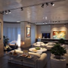 - Halogenlampen. Sie zeichnen sich durch ein schwaches Leuchten aus und werden daher häufig bei der Gestaltung einzelner Elemente des Interieurs verwendet. Sie können sehr gut in verschiedenen Nischen, Bögen, dekorativen Trennwänden platziert werden. Sie dienen der Beleuchtung von Gemälden, Fotografien und Skulpturen.