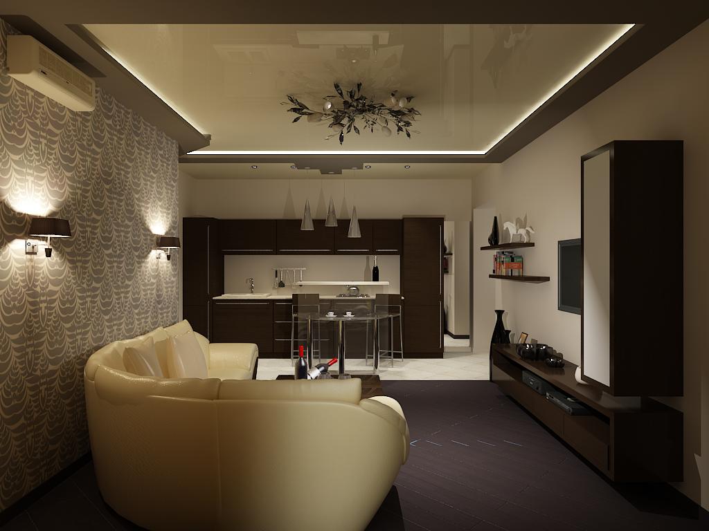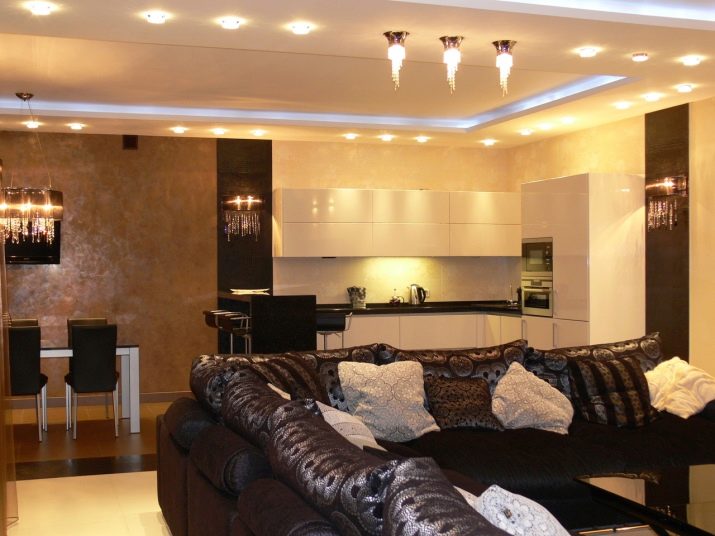 Wenn Sie verschiedene Arten von Beleuchtung kompetent kombinieren, wird die Wohnung nicht nur stilvoll, sondern auch komfortabel sein.Mit einem erfolgreichen Wechsel von verschiedenen Lichtquellen und Schatten können Sie die vorhandenen Nachteile ausblenden und die Stärken des Raumes hervorheben.