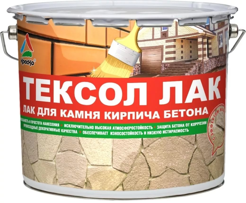 Die Grundlage für die Herstellung solcher Lacke ist Styrol, das der behandelten Oberfläche eine zusätzliche Chemikalienbeständigkeit und hohe Festigkeit verleiht. Das gebräuchlichste Material ist "Texol" - Polymerlack für Stein und Beton. Zusätzlich zu diesen Eigenschaften schützt gut vor Korrosion. In der Konstruktion wird es am häufigsten in der Behandlung von Pflastersteinen, Ziegelrändern und dekorativen Elementen verwendet. "Texol" erhöht die Nutzungsdauer der Beschichtung, es ist einfach anzuwenden, resistent gegen atmosphärische Effekte, fast nie ausgelöscht.