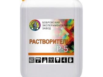 - R-5 / R-5A. Diese Zusammensetzungen zeichnen sich durch einen größeren Umfang aus.Die Konzentration der chemischen Komponenten in ihnen ist etwas anders: Toluol in der Zusammensetzung ist zu 40% vorhanden, der Anteil von Aceton und Butylacetat macht 30% aus. Solche Lösungsmittel sind zur Verwendung mit Kautschuk-, Silikon- und Polyacrylharzmaterialien geeignet.