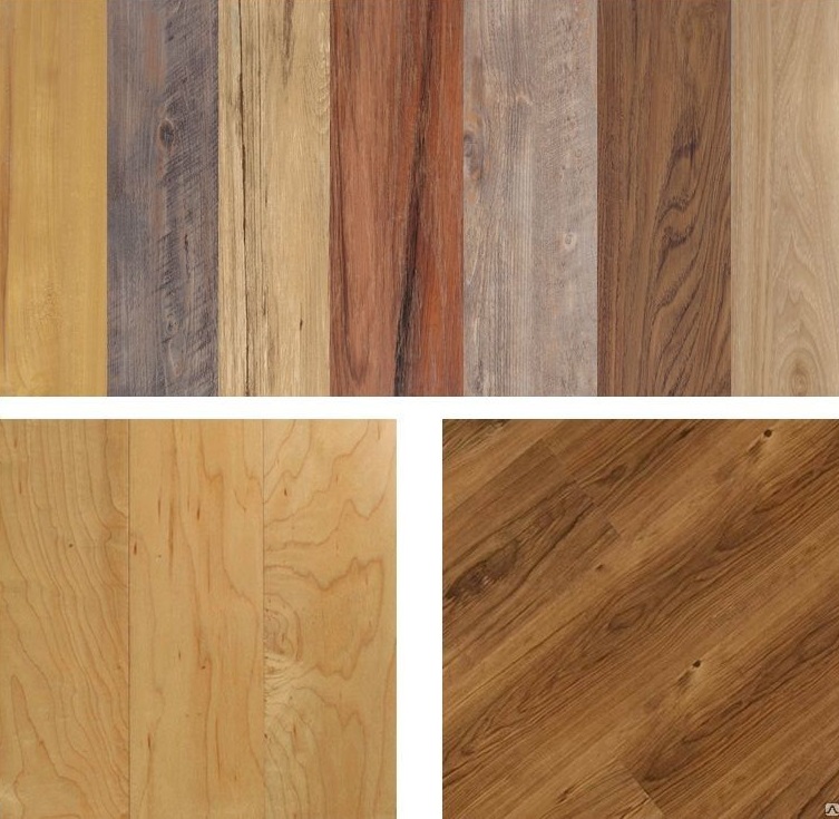 Die Farbe der Beschichtung ist sehr vielfältig. Es gibt eine breite Palette von Qualitätsimitationen für Holz, Metall, Stein. Sie sind so gut verarbeitet, dass sie vom natürlichen Material kaum zu unterscheiden sind. Eine der beliebtesten Texturen sind Imitationen von Eiche, Buche, Kirsche, Marmor, künstlerischem Parkett.