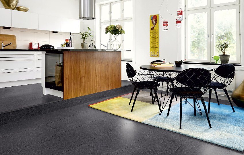 - damit der Staub auf dem Boden in den gut beleuchteten Räumen nicht sehr sichtbar ist, sollten Sie sich die dunklen Farbtöne der Beschichtung ansehen;