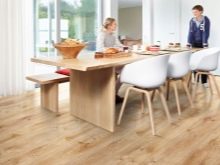- "Fortissimo" ist ein hochfestes Modell, das an Orten mit hoher Belastung eingesetzt wird.Die Lamellen haben eine Stärke von 12 mm, und das Vorhandensein einer viereckigen Fase trägt dazu bei, dem Fußboden ein natürliches Aussehen zu geben, das sich kaum von natürlichem Parkett unterscheidet.