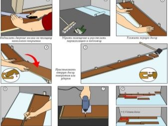 Um die Installation der Beschichtung selbst durchzuführen, benötigen Sie eine Montageanleitung und die folgenden Werkzeuge: Bleistift, Lineal, wasserfestes Klebeband, Handsäge oder Stichsäge. Bevor Sie mit dem Verlegen beginnen, müssen Sie das Paneel für zwei Tage in einer ausgepackten Form bei einer Raumtemperatur von 22 Grad und einer relativen Luftfeuchtigkeit von 55% belassen. Dies muss geschehen, um das Material während der Winterlieferung bei niedrigen Temperaturen zu akklimatisieren. Der nächste Schritt ist die Vorbereitung des Bodens, der darin besteht, die Oberfläche zu säubern und die kritischen Höhenunterschiede auszugleichen.