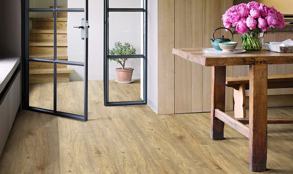 Das Design des Laminats beinhaltet spezielle HDF-PlatteDas basiert auf den eigenen Entwicklungen des Unternehmens.Es hat eine hohe Feuchtigkeitsbeständigkeit, Feuerbeständigkeit und die Fähigkeit, mechanischer Beanspruchung zu widerstehen. Der Koeffizient der Feuchtigkeitsabsorption ist dreimal höher als die Indikatoren, die in den europäischen Normen festgelegt sind. Die Schutzschicht enthält Wachs, das die wasserabweisenden Eigenschaften der Produkte erhöht. Bedienfeldsperre Klicken Sie auf Express Es ist auch eine patentierte Erfindung der wissenschaftlichen und technischen Abteilung des Unternehmens. Es bietet eine einfache Verbindung der Lamellen untereinander und macht die Oberfläche des Bodens optisch nahtlos und sehr glatt.