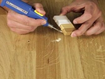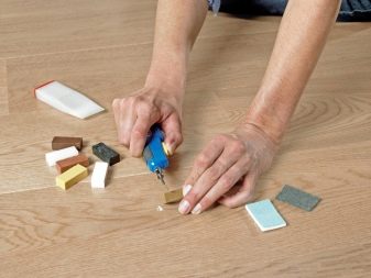 Manchmal nach dem Reparieren und Neuanordnen von Möbeln können Kratzer auf dem Boden, Lücken zwischen den Brettern auftreten, und ein unangenehmes Geräusch, das vom Boden kommt, tritt ebenfalls auf. Wenn Laminat knarrt, Kratzer entstehen, ist die wichtigste Aufgabe - einen Weg zu finden, solche Defekte zu beseitigen.Wizards bieten den Bewohnern den Kauf von Spezialwerkzeugen, Kitt, Wachsstiften und Lacken zur Bodenreparatur an.