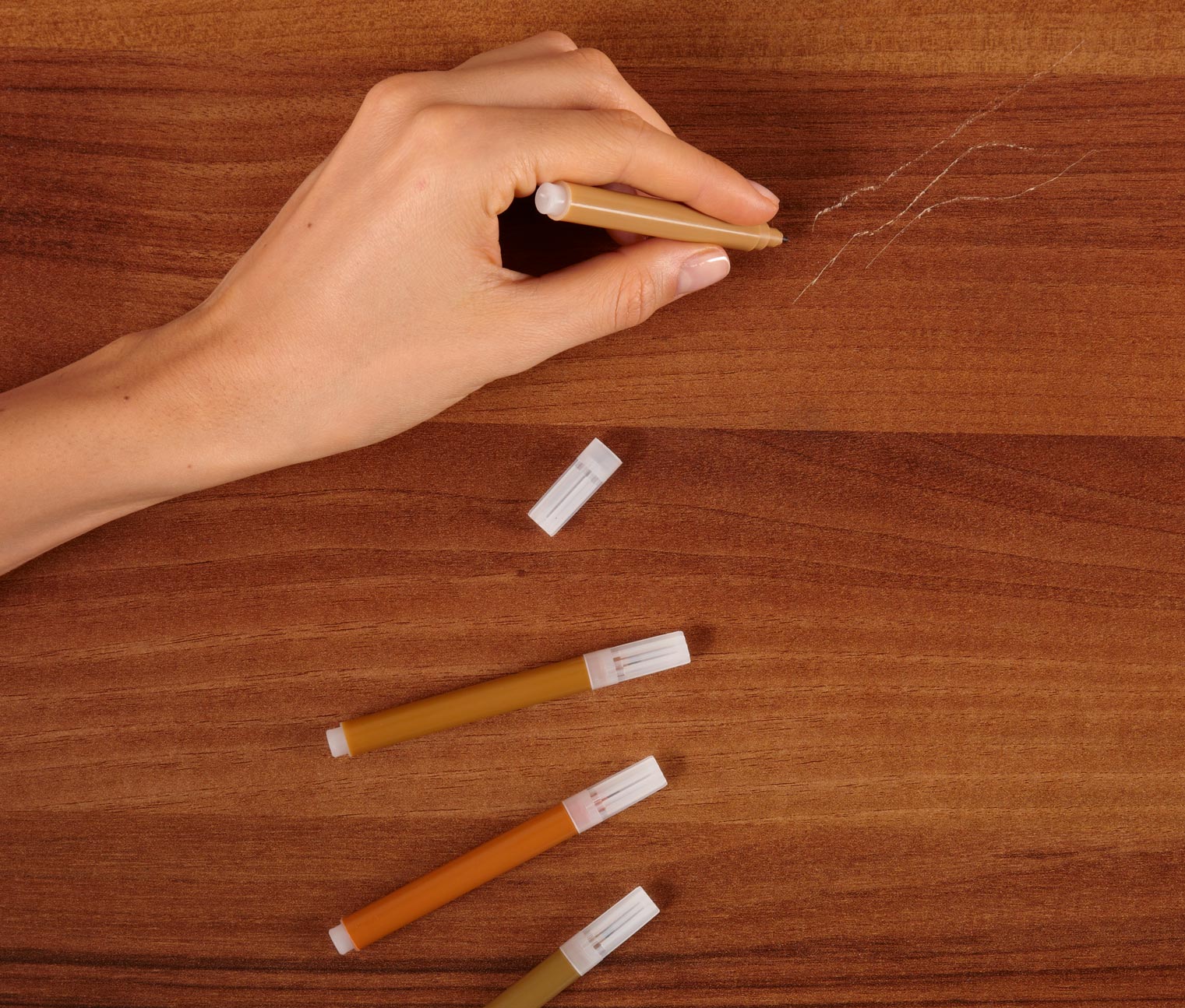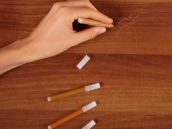 - Für die Restaurierung von Parkett verwenden oft Meister Wachsmalstifte (Bleistifte). Sie sind von zwei Arten: weich und hart.Mit flüssigen Buntstiften können Sie das beschädigte Teil mit einem speziellen Spatel abwischen. Solche Buntstifte enthalten keine öligen Substanzen, sie sind perfekt mit verschiedenen Lacken und anderen Chemikalien kombiniert. Wachsmalstifte sollten auf 95 C erhitzt werden. Diese Stifte können mit allen Farb- und Lackprodukten kombiniert werden. Auch feste Kreide kann im Freien verwendet werden. Kreidewachs ist in verschiedenen Farbtönen erhältlich, sie können sich miteinander mischen, um den gewünschten Farbton zu erhalten.