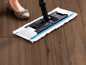 Mieter von Wohnungen denken oft darüber nach, welche Art von Bodenreinigung besser ist: trocken oder nass. Meister empfehlen am häufigsten, das trockene Aussehen zu verwenden. Laminieren Sie genug, um zu fegen oder zu saugen. Eine Nassreinigung kann einmal pro Woche erfolgen. Verwenden Sie dazu weiche Tücher und Pinsel sowie spezielle Reinigungsprodukte. Es ist besser, den Boden mit sauberem und warmem Wasser (40-50 ° C) zu waschen.