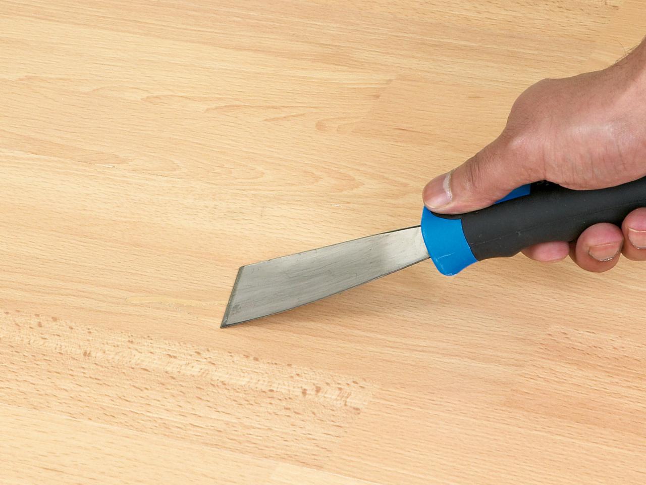 Wenn nach dem Umstellen der Möbel Kratzer auf dem Laminat vorhanden sind, sollten diese entfernt werden. Verwenden Sie dazu Wachsstifte. Bei tiefen Kratzern für die Restaurierung ist der Bodenspachtel jedoch am besten geeignet. Mit einem Spatel sollte das Produkt sorgfältig auf Kratzer aufgetragen werden.