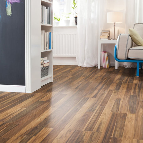 - hohe Festigkeit, Stabilität Produkte zu mechanischen Belastungen und Abrieb ermöglichen den Einsatz von Laminat in Bereichen mit hohem Fußgängerverkehr. In Wohngebieten mit mäßiger Belastung garantiert der Hersteller eine einwandfreie Versorgungssicherheit von bis zu 20 Jahren. Für öffentliche Orte mit hohem Verkehrsaufkommen wird der Begriff etwa 5-7 Jahre lang sein, und an sehr belebten Orten mit einem großen Strom von Leuten wird das Laminat 4 Jahre dauern. Die Oberfläche ist widerstandsfähig gegen scharfe Absätze, Möbelfüße, Stuhlrollen und schwere Gewichtsbelastungen, was den Einsatz von Laminat in Fabrikhallen, Lagerhallen und Industriegebäuden ermöglicht;