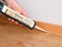 Acryl-Dichtstoff für Laminat kann verwendet werden, um kleinere Defekte (Späne, Risse) des Bodenbelags zu beseitigen.Die Struktur des Materials auf Acrylbasis weniger fest und elastischer als die Silikon-Version. Auf ihnen basierende Gele sind selten farblos.