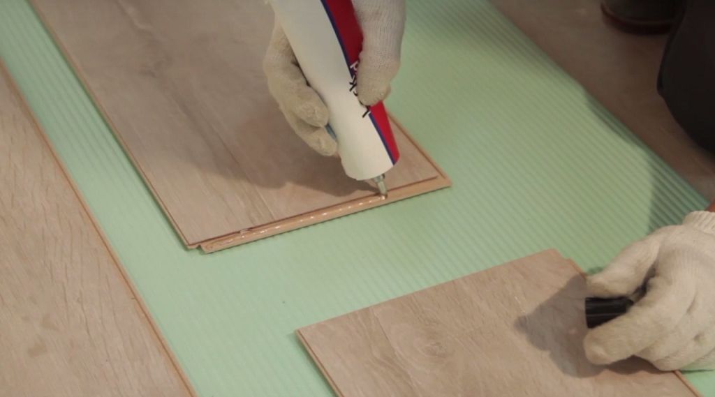 In der Regel weisen kostengünstige Optionen für Laminat keine guten wasserabweisenden Eigenschaften auf. Bei längerem Betrieb des Bodenbelags an den Fugen können sich Hohlräume und Risse bilden, die zu einem Quietschen führen. Um die Leistung des Laminats zu verbessern und viele der mit dem Bodenbelag verbundenen Probleme zu vermeiden, wird empfohlen, während der Installation ein spezielles Dichtmittel zu verwenden.