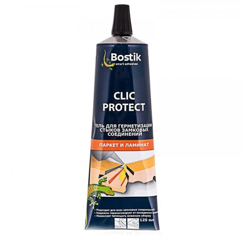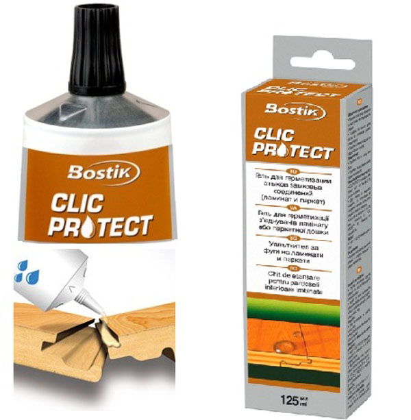 Das Click Protect Dichtgel des französisch-deutschen Konzerns Bostik wird bei der Verlegung von Laminatbeschichtungen mit Rastfugen verwendet. Die Versiegelung sichert die Streifen sicher und schützt die Beschichtung vor dem Eindringen von Feuchtigkeit. Das Material ist auf der Basis von Polyurethan hergestellt. Nach dem Trocknen bildet sich ein transparenter Film auf der Oberfläche, der leicht zu entfernen ist.