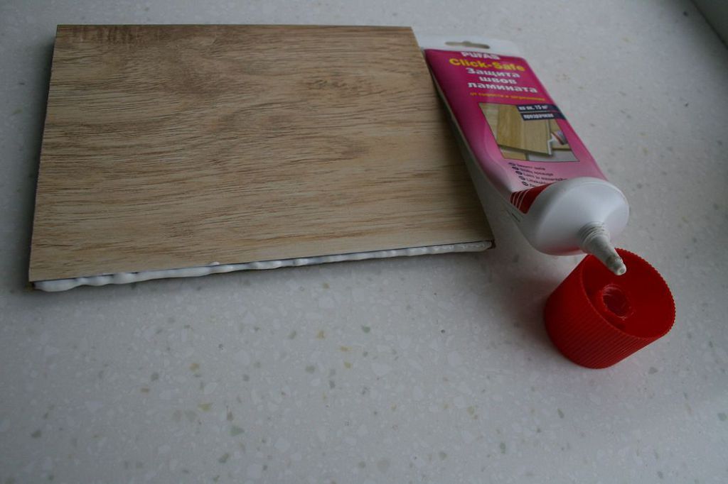 - mit Hilfe von Acryldichtmittel können Sie den Chip auf dem Laminat versiegeln;