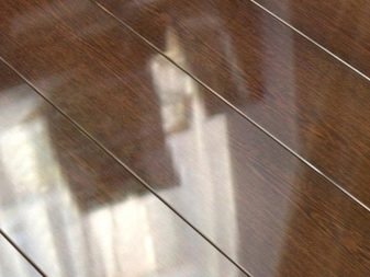 - Oberfläche des Bodens.Diese Art der Beschichtung erfordert eine sorgfältige Vorbereitung und perfekte Ausrichtung der Bodenoberfläche, da ansonsten die glänzende Oberfläche sofort alle Defekte hervorhebt und kleinste Unebenheiten zu einer Divergenz der Nähte führen können. Der Eindruck wird hoffnungslos fehlerhaft sein. Das Substrat für das glänzende Laminat ist Kork oder Polystyrolschaum.