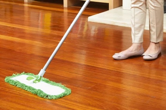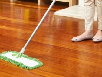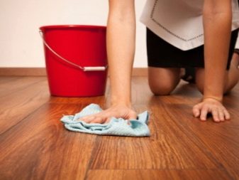 - Verlassen Bei der Pflege dieses Fußbodens gibt es einen Nachteil: Bei der Reinigung kann es kleine ästhetische Flecken und Flecken geben. Um dies zu vermeiden, müssen Sie spezielle Wischtücher und Mikrofasertücher verwenden.