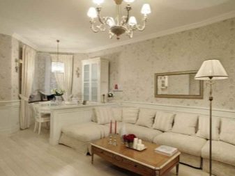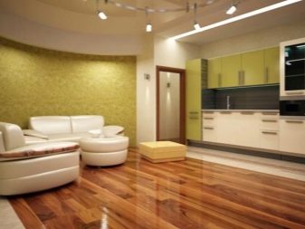Besonders profitabel hebt sich dieser Boden ab die Mindestanzahl von Möbelstücken und Dekorationsgegenständen. Darüber hinaus ist es eine einfache Möglichkeit, die grafische Darstellung im Raum zu betonen und die Möbel effektiv zu präsentieren.