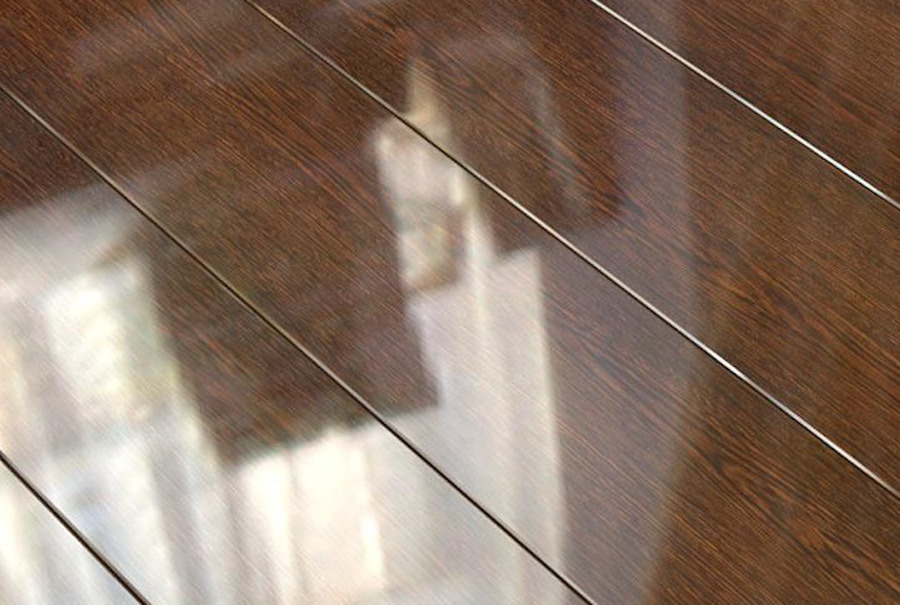 - Glanz Diese Art von Laminat zeichnet sich durch einen Spiegelglanz aus, der die Beschichtung besonders fest und schön macht. Während des Betriebs wird der Glanzgrad aufgrund der Verarbeitung von Melaminharzen bei der Herstellung von Lamellen nicht verringert.