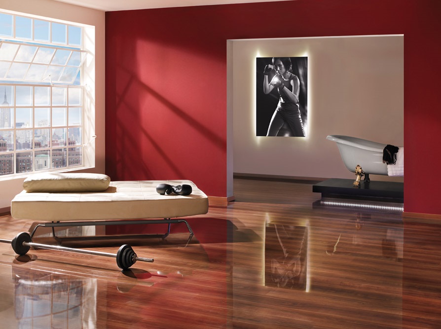 Glanzlaminat ist eine Faserplattenstärke von 6, 8, 10 oder 12 mm, bezogen Melamin oder Acryldadurch wird die laminierte Platte zu verschleißfesten und gut tolerierten Temperaturabfällen und mechanischen Belastungen. Das brilliante Laminat, das mit einer zusätzlichen Schicht versehen ist, kann außerdem den Hintergrund der Lärmbelästigung der Wohnung reduzieren. Eine solche Schicht sieht wie ein Superglanz aus, was dieses Laminat besonders attraktiv für den Verbraucher macht.