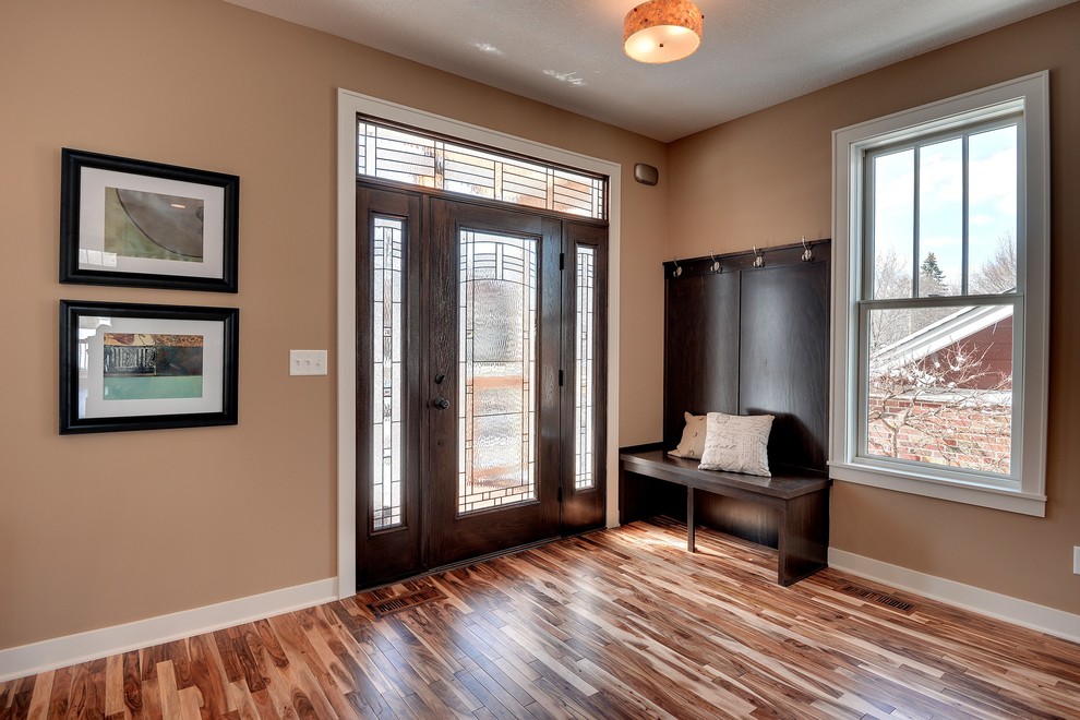Bei der Wahl eines Laminats für den Flur und den Flur lohnt sich ein Blick Zwei-Wege-Option. Die Lamellen dieser Beschichtung enthalten Dekor in Form von zwei Dielen auf der gleichen Leinwand. Besonders beeindruckend und schön wirkt dieses Dekor in der Küche, Fluren, Fluren, wo Naturholztexturen angebracht sind. Zwei-Wege-Laminatboden wird ideal für das Badezimmer und die Toilette sein.