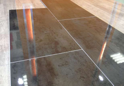 - Rutschfeste Oberfläche. Mit all seinem Glanz ist Laminat absolut sicher und Sie können keine Angst vor dem Fallen haben. Glitter wird durch die Einführung von Harzen und Acryl und nicht durch Polieren gebildet.