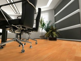 Machen Sie Büroräume, bevorzugen Sie auch Laminat.Es ist langlebig und einfach zu montieren. Darüber hinaus bieten Hersteller eine große Auswahl an Farbpaletten an.