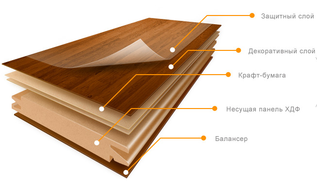 Um eine Vorstellung von dem Laminat zu bekommen, ist es notwendig, die Struktur des vorgeschlagenen Bodens zu studieren: