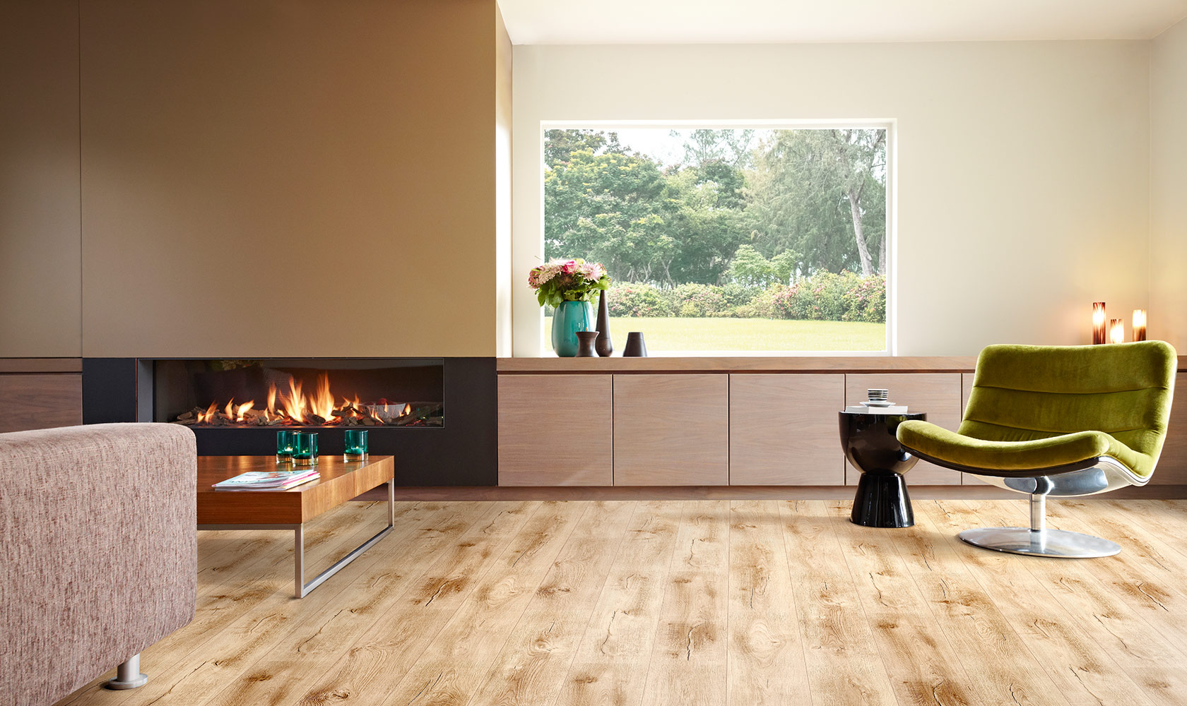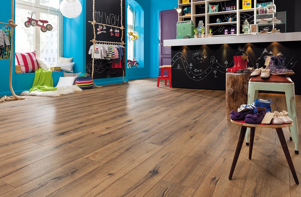 Für das Wohnzimmer, Schlafzimmer und Kinderzimmer passen Laminat der Klassen 31 und 32. Es ist geeignet für eingebaute "warme" Böden. Die Eigenschaften der Beschichtung umfassen Wärme- und Schalldämmung. Es besteht keine Notwendigkeit, ein Laminat der höheren Klasse für das Haus zu kaufen, da es keine schwere Last gibt.