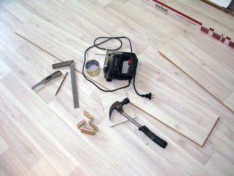 Für die Arbeit müssen Sie stanzen und bohren. Mit Hilfe einer Bügelsäge wird es notwendig sein, die notwendigen Fragmente des Laminats selbst und die Stäbe für seinen Rahmen zu schneiden. Am einfachsten messen Sie die erforderlichen Maße mit einem Maßband (am Material selbst) und einer Ebene (an der Decke). Es ist ratsam, eine Leiter zu benutzen, weil zum Arbeiten, auf einem Tisch oder einer anderen improvisierten Höhe stehend,unbequem und gefährlich. Da es notwendig ist, Schrauben zu verwenden, stellen Sie sicher, einen Schraubenzieher vorzubereiten.
