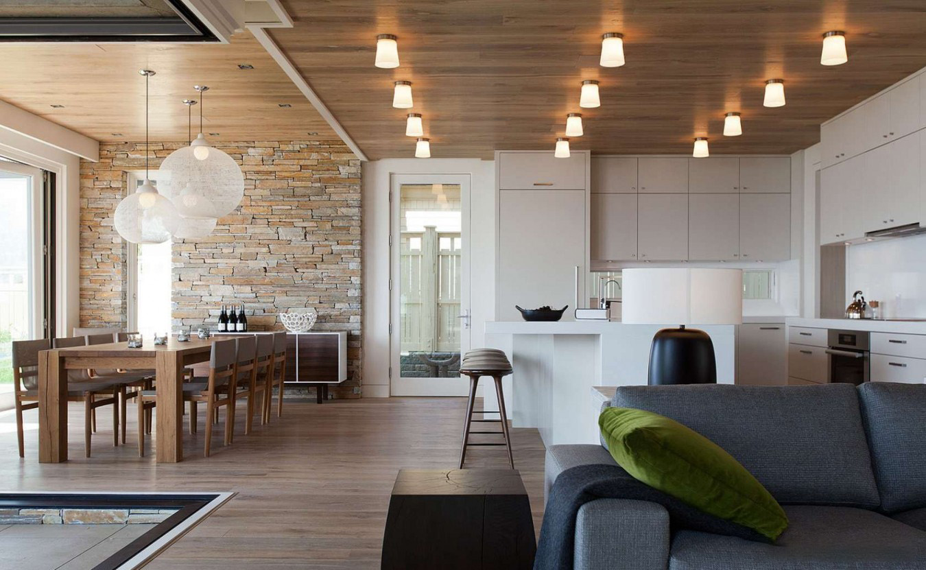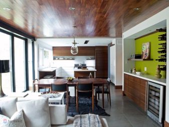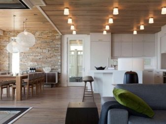 Experten empfehlen, die Laminatdecke in den Wohn-, Ess- und Durchgangsräumen weiter zu dekorieren.