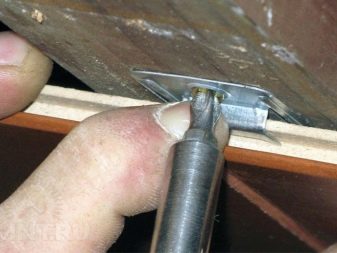 Stapelverriegelungen werden häufig verwendet, um Laminat an den Kanten zu befestigen; Diese Verbindung ist fast unsichtbar und beeinträchtigt nicht das Aussehen der Decke. Um die Paneele mit der Kiste zu befestigen, benutzen Sie die Markierungen, sie werden mit Nägeln und Schlagbolzen (Körner) in die Stämme getrieben.