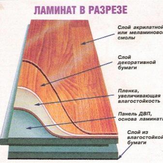 Oben ist MDF (gepresste und geklebte Holzfasern), die Steifigkeit und Festigkeit des Materials hängen von den Eigenschaften dieser Schicht ab. Eine dekorative Oberfläche wird noch höher platziert, nur darauf wird die Holzstruktur oder die Oberfläche eines anderen Veredelungsmaterials nachgeahmt. Die letzte Schicht erfüllt eine Schutzfunktion.