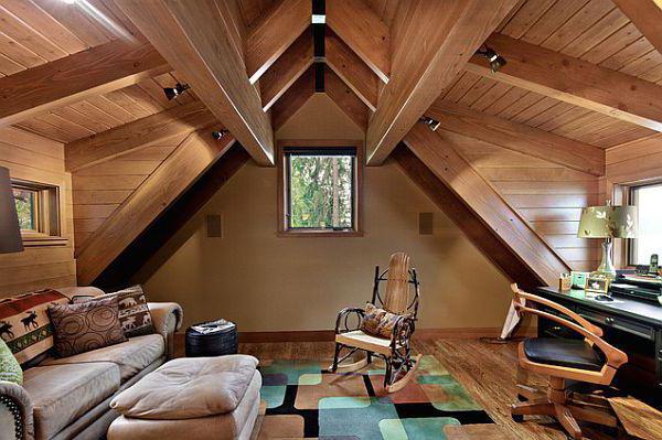 Die Verwendung von Laminat für die Dekoration auf dem Dachboden und an anderen Orten kann sowohl gut als auch schlecht sein, es ist nur wichtig für welchen Zweck und wie es verwendet wird. Matte Paneele sehen viel besser aus als glänzend. Wenn Sie die Decke in einem Holzhaus dekorieren möchten, können Sie eine so stilvolle Lösung wie ein gealterter Baum mit klar gezeichneten Mustern verwenden. Der umgekehrte Schritt ist jedoch angebracht, wenn Beschichtungen aufgetragen werden, die als Stein oder Metall stilisiert sind. Auf Kontrasten spielen Es hilft, mit Ihren eigenen Händen eine originelle und gemütlich aussehende Einrichtung zu schaffen.