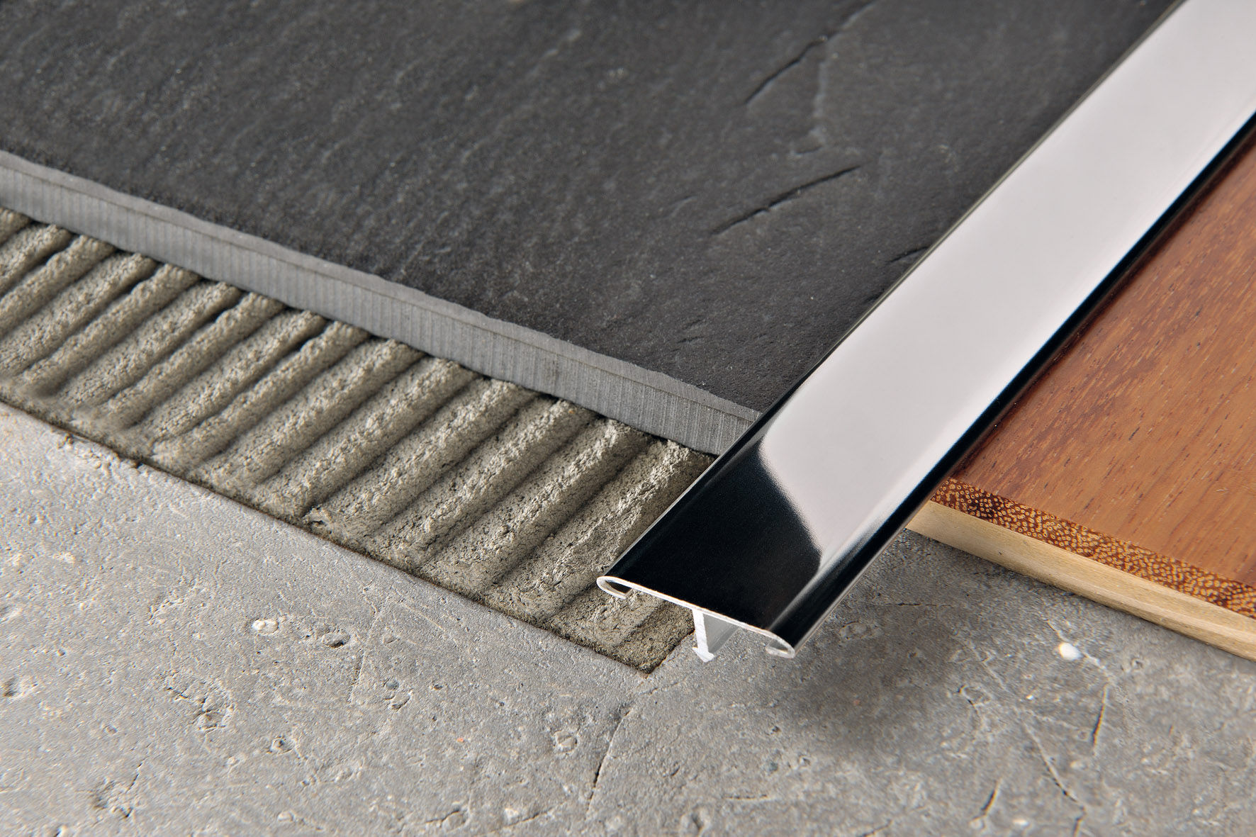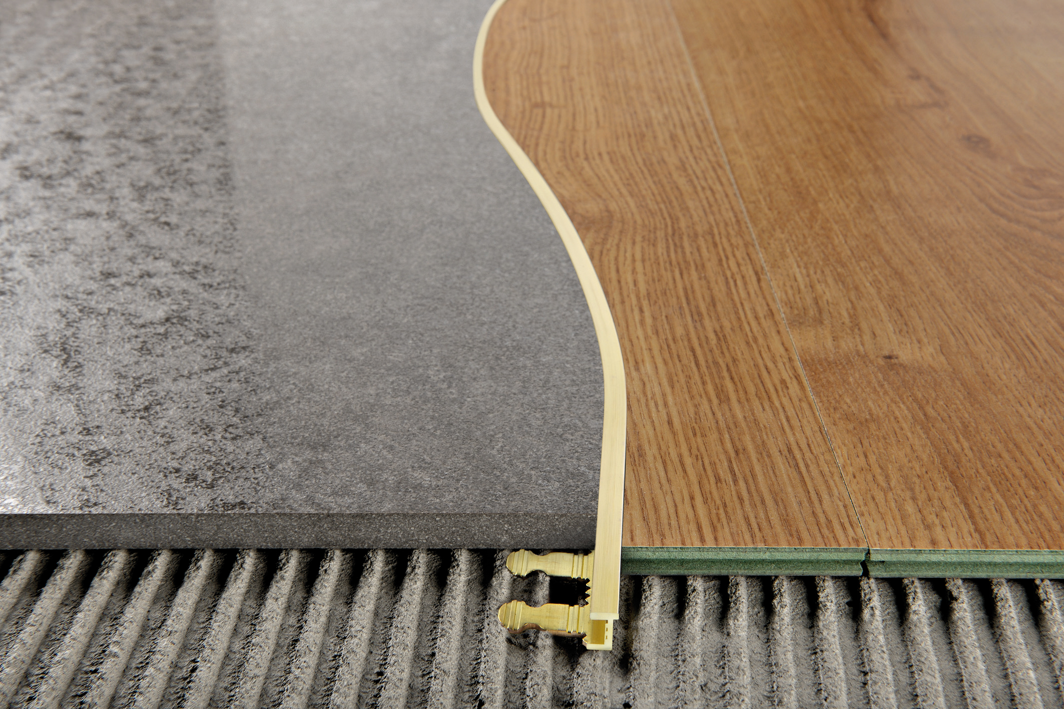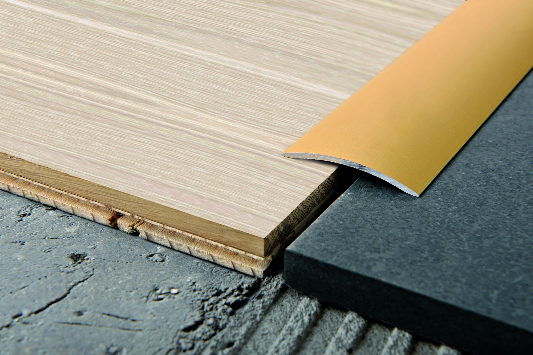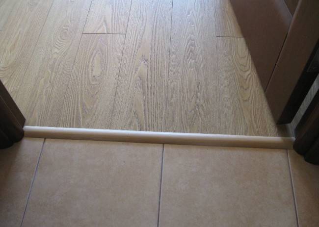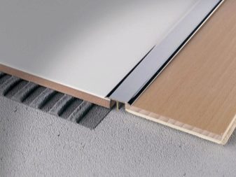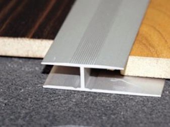 Hauptsächlich ist eine gut gewählte Mutter dazu bestimmt, die Fugen zwischen den Böden zu überdecken. Also, in den Orten der Verbindung Laminat mit Fliese verwendet Die folgenden Arten von Verbindungsplatten:
