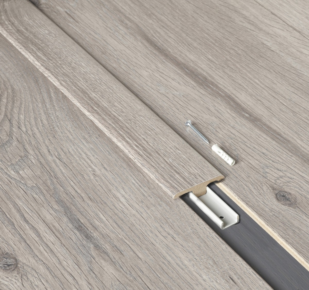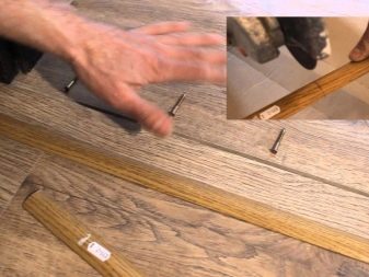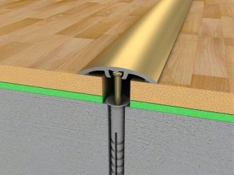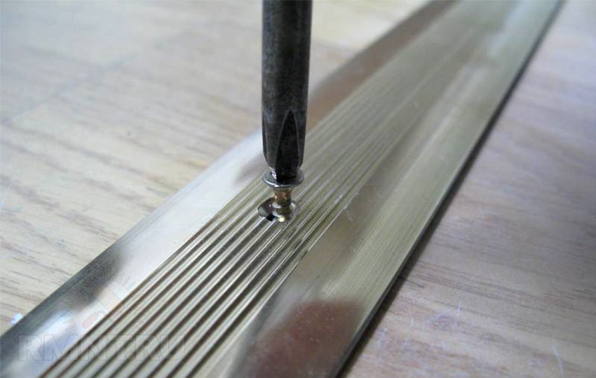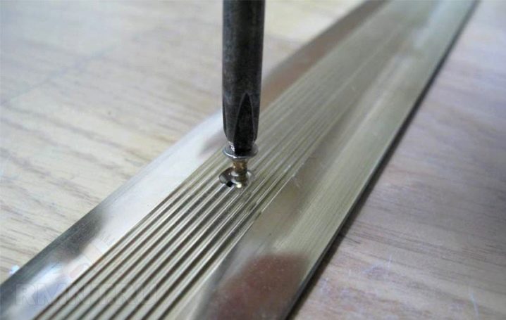 Wenn in Ihrem Heimlaminat auf einer Holzoberfläche installiert ist, kann die Schwelle mit einfachen Schrauben daran befestigt werden. Wenn die Basis aus Beton besteht, müssen an der Stelle der Befestigungen Löcher gebohrt und Kunststoffdübel hineingetrieben werden.