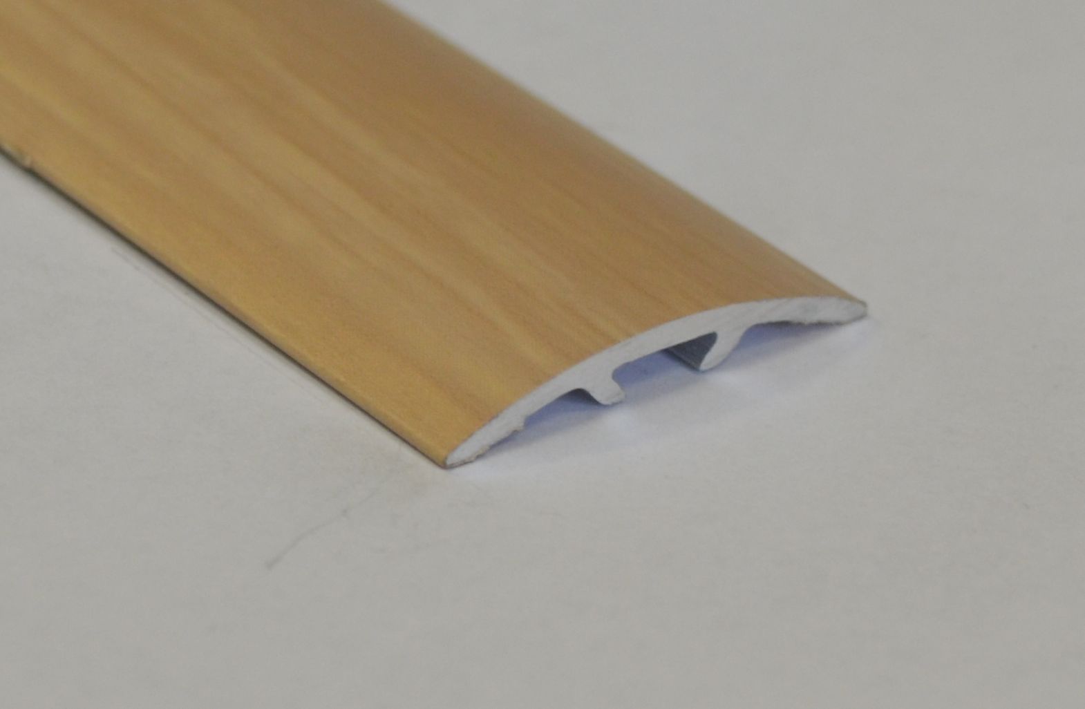 - Laminiert. Solche Aluminiumstreifen sind mit einer speziellen dauerhaften PVC-Folie bedeckt, die eine Textur aufweist, die Laminat wiederholt. Diese Optionen sind die meistverkauften, da sie kostengünstig sind und durch die größte Auswahl vertreten sind;
