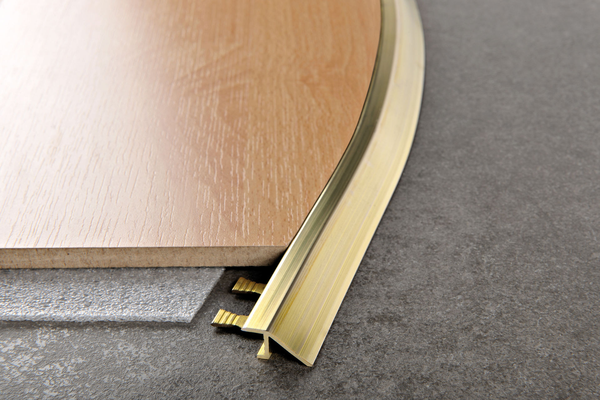 - Vorübergehend. Solche Modelle werden oft verwendet, um Kompensationslücken zu schmücken. Vor allem sind diese Arten von Schwellen entworfen, um einen sauberen und glatten Übergang von einer Art zu einem anderen Bodenbelag zu bilden. Darüber hinaus schützen die Übergangsteile das Laminat vor Schmutz, Staub und Schmutz und schützen es vor dem Auftreten von Spänen, Graten und ähnlichen Schäden. Es ist erwähnenswert, dass Sie mit Hilfe richtig ausgewählter Übergangsschwellen den unaufdringlichen Effekt der Raumzonierung erzeugen können;