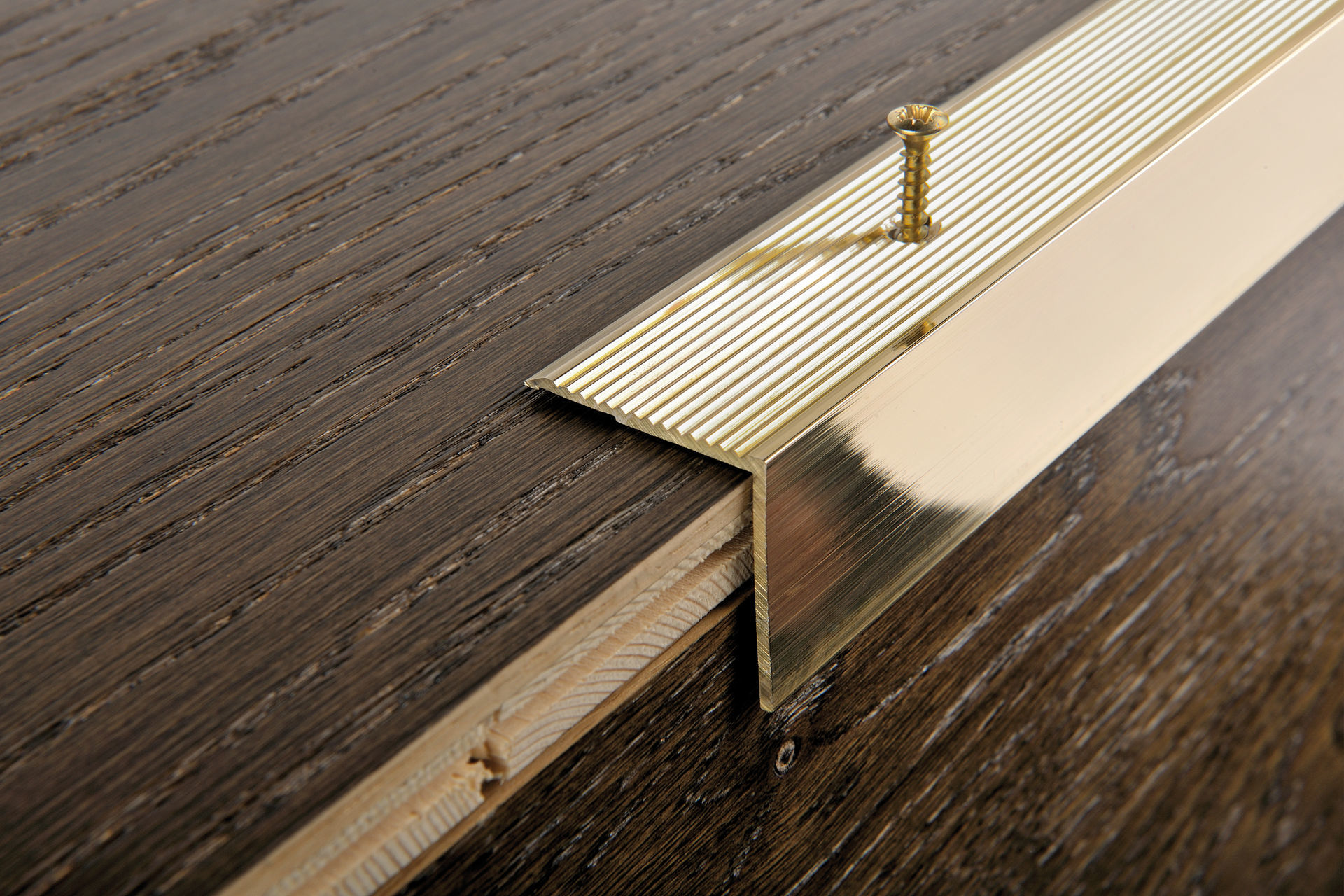 - Ecke. Laminatboden wird oft für die Verkleidung von Treppen verwendet, und in diesem Fall sind die Eckplatten sehr praktisch. Sie bestehen aus Metall, Holz oder MDF und schützen den Boden vor Abrieb, Schmutz und übermäßigem Schlupf. Diese Teile sind standardmäßig fixiert: offen oder geschlossen. Bei der nicht isolierten Befestigung werden die Ecken mit Beschlägen befestigt, und wenn sie geschlossen sind, mit zusätzlichen Kanten einer speziellen Form;