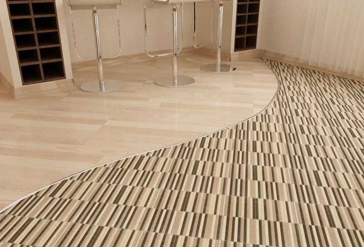 - Funktionsbelastung von zwei Räumen. Zum Beispiel kann es ein Korridor sein, mit Laminat ausgekleidet, und eine Küche mit Keramikfliesen.Da der zweite Raum nass ist, ist es notwendig, ein feuchtigkeitsbeständiges Pulver zu wählen. Diese Eigenschaften haben ein Modell aus Aluminium oder Kunststoff;