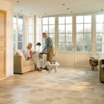 - Exquisa. Innovative Serie, vertreten durch laminierte Platten, imitiert Fliesen. Gleichzeitig hat dieses Laminat eine reliefartige Oberfläche mit quer verlaufenden Streifenrillen, die der Verbindung zwischen den Bodenfliesen ähneln.