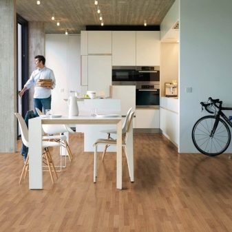 Nichtsdestotrotz hat Quick Step vor kurzem eine Beschichtung von 33 Klassen mit einer Dicke von 12 mm eingeführt. Dies ist eine laminierte hochfeste Beschichtung für Räume mit konstanter hoher Luftfeuchtigkeit. Aber der Preis dieses Produktes ist ziemlich hoch, obwohl es seine Qualität rechtfertigt.