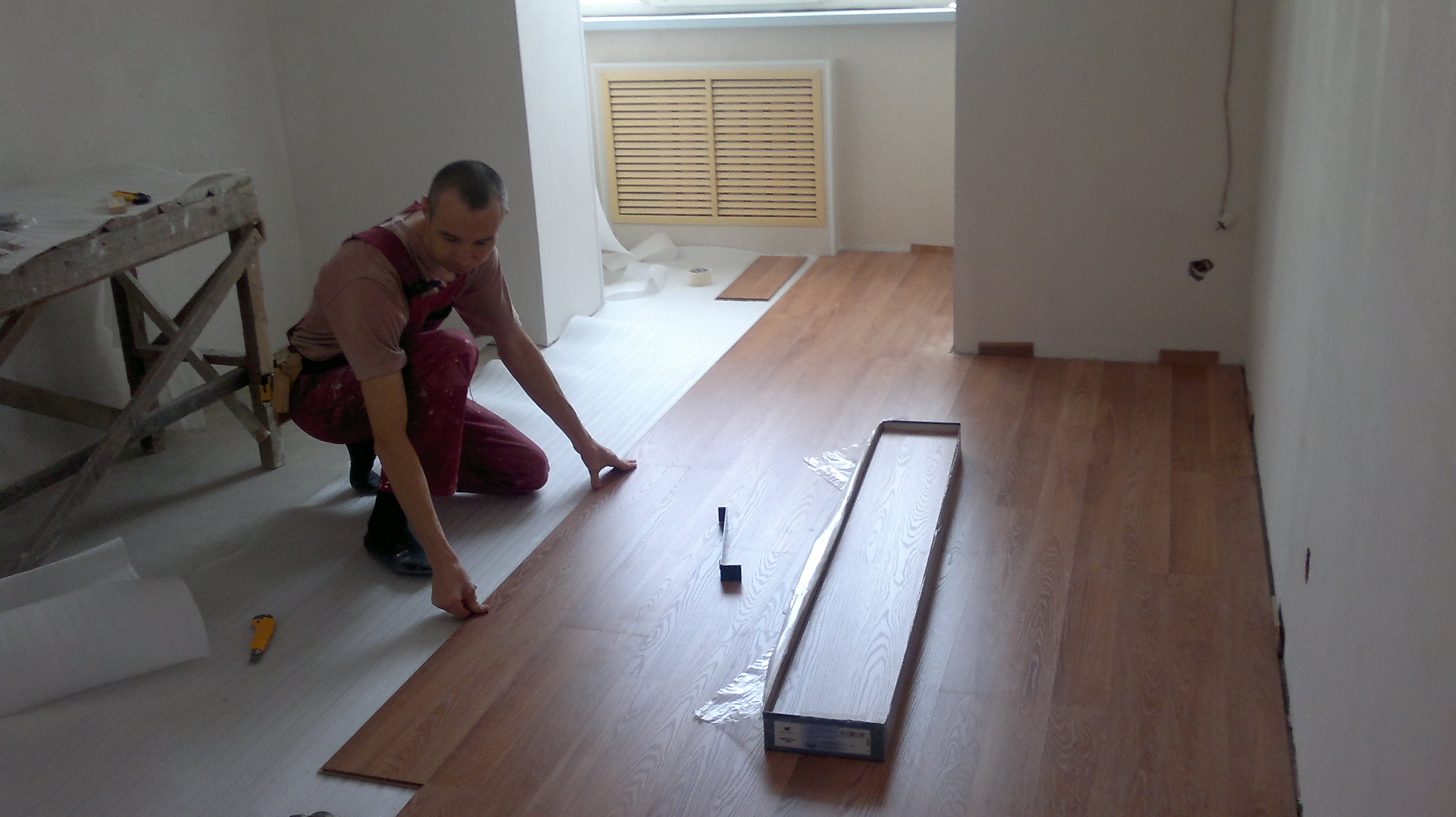 - Zuerst akklimatisieren Sie das Laminat unter den Bedingungen, wo es innerhalb von 2-7 Tagen passt.