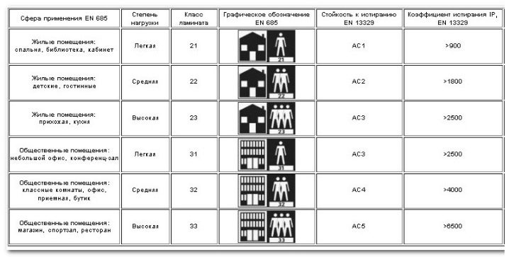 Je höher die Haltbarkeitsklasse ist, desto höher kann die Belastung für Laminat sein:
