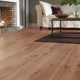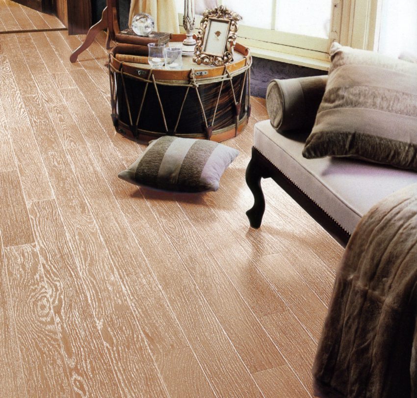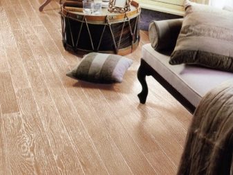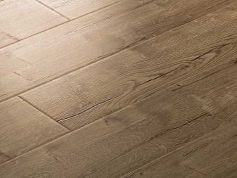 In den Geschäften finden Sie auch gebürstetes Laminat. Seine Oberfläche wird mit einer Metallbürste behandelt und dann wird Lack aufgetragen. Diese Beschichtung ist dem natürlichen Holz am ähnlichsten.