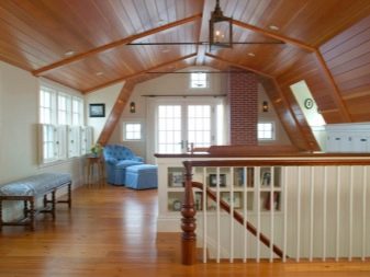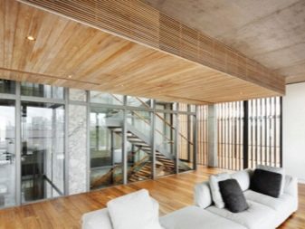 Heute wird die Verlegung der Laminatabdeckung immer beliebter. an die Decke. Für die Decke können Sie ein Laminat mit einer großen Fase kaufen. Diese Option wird in Räumen mit hohen Decken originell aussehen.