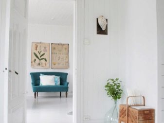 Die weiße Farbe von laminierten Produkten mit Rillen wird oft in Räumen im Stil von Hi-Tech und der französischen Provence verwendet. Graues Laminat ist ideal für Loft und Futurismus. Dank des hellen Bodens erweitert sich der Raum optisch. Auch helle Platten mit einer Facette werden mit einer Rechnung für eine natürliche Platte, einen Stein und mit Nachahmung der künstlichen Alterung gemacht.