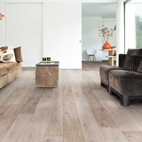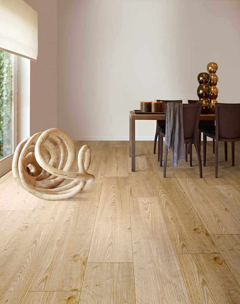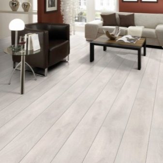 Viele glauben, dass der Boden eine helle Farbe ist, die besondere und sorgfältige Pflege benötigt. In der Tat ist dies absolut nicht der Fall. Wenn Sie weißes Laminat kaufen, Reinigung wird nicht länger sein und vielleicht wird es im Gegenteil mit der Zeit abnehmen, weil auf dem hellen Boden weniger sichtbarer Staub als auf der dunklen Oberfläche ist. Die beliebtesten Käufer sind Farben - gebleichte Eiche und helle Eiche.