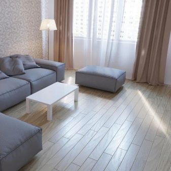 Die diagonale Methode ist originell und erlaubt Ihnen, die Eigenschaften des Bodens zu betonen.Diagonales Styling erhöht auch optisch die Raumgröße. Mit dieser Methode erhöht sich der Materialverbrauch um 10-15%.